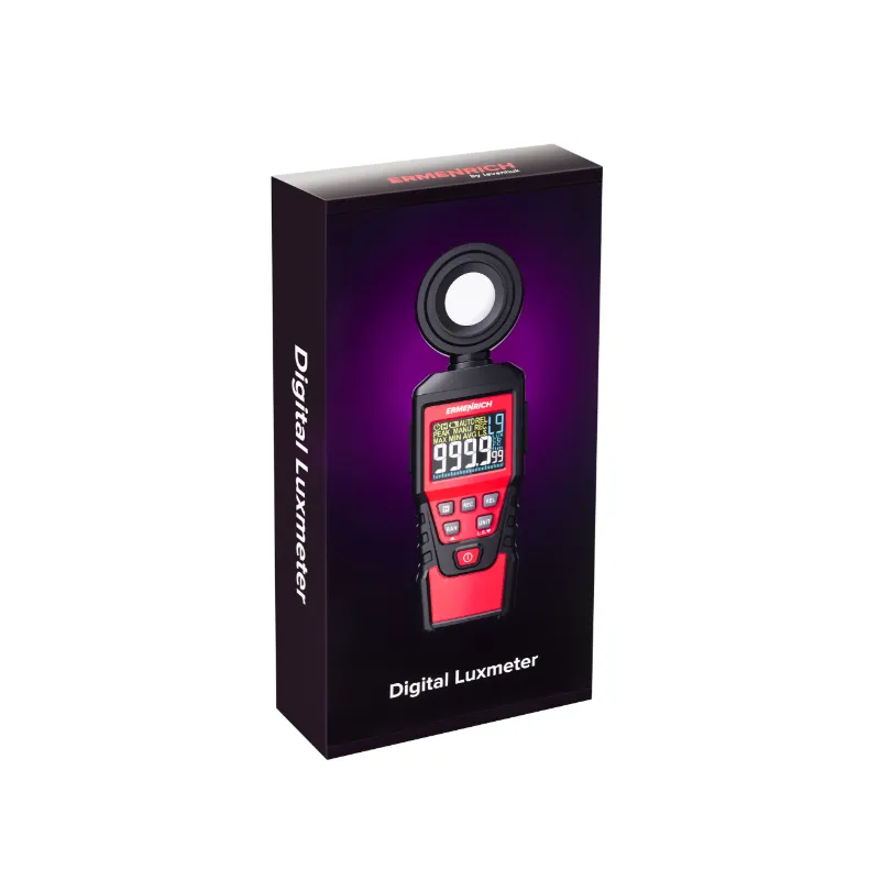Цифровой люксметр Ermenrich Seek MX20 представляет собой современный инструмент для точного контроля уровня освещённости в самых разных условиях — от проверки рабочих помещений и учебных классов до настройки студийного света или оценки качества освещения бытовых помещений. Прибор измеряет освещённость в двух единицах — люксах и фут-свечах, что делает его удобным как для специалистов, привыкших работать по международной системе, так и для тех, кто использует альтернативные стандарты. Широкий диапазон измерений позволяет работать с очень слабым и с крайне интенсивным светом: от 1000 до 200000 люкс или от 100 до 20000 фут-свечей. Такой охват делает устройство универсальным, а точность ±(3%+5) обеспечивает достоверность полученных данных даже при измерениях в сложных условиях.